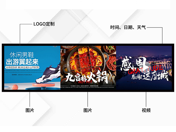 液晶廣告機和液晶條形屏在多個方面存在顯著的差異。以下是對兩者的詳細對比:一、設(shè)計與定制化程度液晶廣告機:雖然也支持一定程度的定制化,但更多采用標準尺寸和設(shè)計。根據(jù)不同環(huán)境和需求,有壁掛式、立式、嵌入式